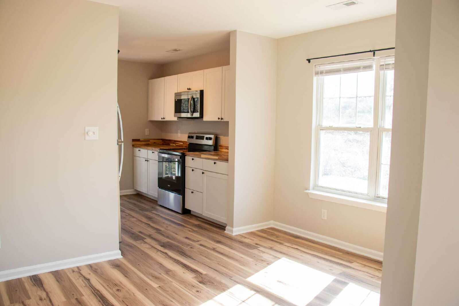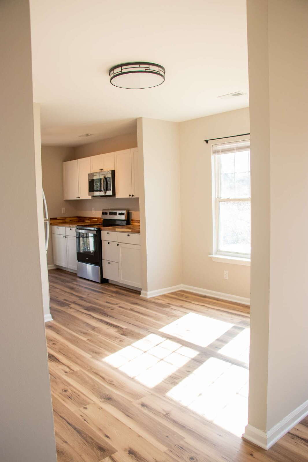 This inviting 3 bed/2 full bath home features a spacious primary suite with dual-vanity bathroom & walk-in closet, a bright, open kitchen and dining area equipped with a microwave, oven, dishwasher, refrigerator, deep sink, & plenty of cabinet storage, AND a large living room filled with natural light ideal for relaxing or entertaining. You’ll also enjoy ceiling fans in every bedroom plus the living room, washer/dryer hookups, and a 2-car driveway, along with a cozy fenced backyard backed by trees that offers added privacy at the cusp of a peaceful dead-end street. All of this is conveniently located within a 10-15 minute drive of neighborhood favorites like Camp North End, VBGB, and Johnson C. Smith University, plus shopping options such as Northcrest Shopping Center and Northlake Mall. Easy public transit access through nearby CATS bus routes along Beatties Ford Road and Lasalle Street. Accepting HCV/Section 8 vouchers.